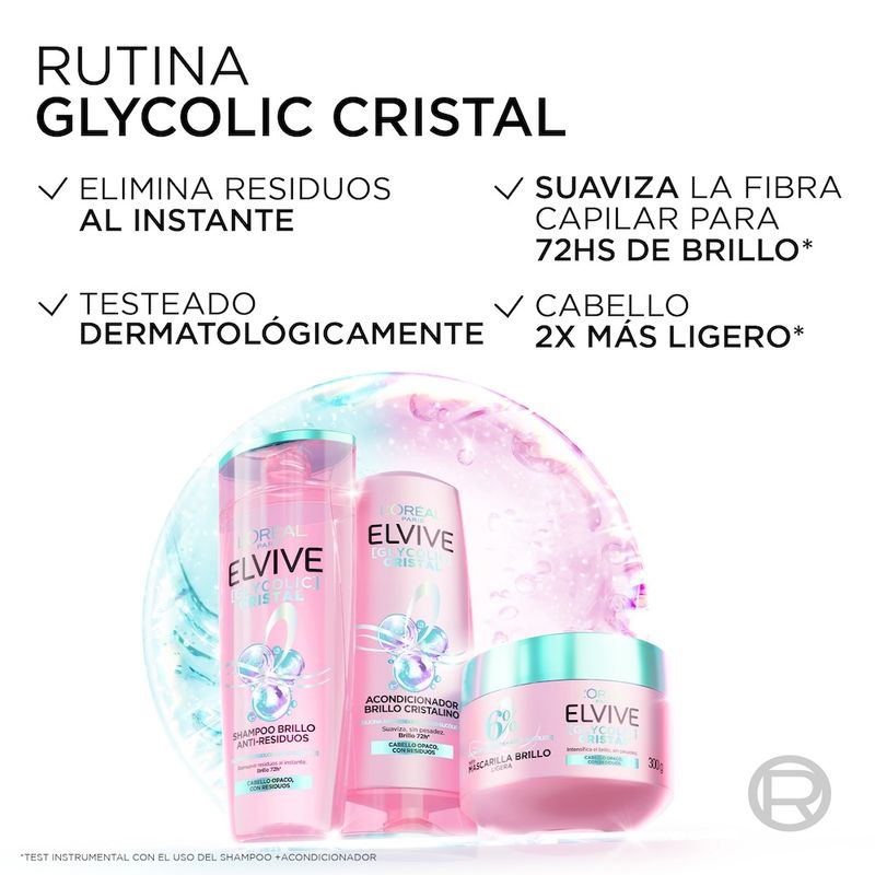 Disfrutá del poder transformador del Acondicionador Elvive Glycolic Gloss en su formato más rendidor de 750 ml. Esta versión está pensada para quienes buscan un tratamiento de brillo profesional de larga duración. Con su exclusiva fórmula con complejo de Ácido Glicólico, este acondicionador sella la fibra capilar de manera intensiva, eliminando la porosidad y garantizando un cabello con efecto gloss duradero.
