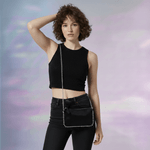 Si buscas un detalle que hable por sí mismo, esta cartera tipo clutch es tu elección ideal. Su textura elegante y el detalle de las tachas metálicas a lo largo del borde le dan un toque audaz y moderno a cualquier conjunto. Es lo suficientemente espaciosa para llevar tus esenciales de noche (teléfono, labial, tarjetas) y lo suficientemente estilizada para ser el centro de atención. Llévala con la cadena cruzada o simplemente de la mano para un efecto sofisticado.