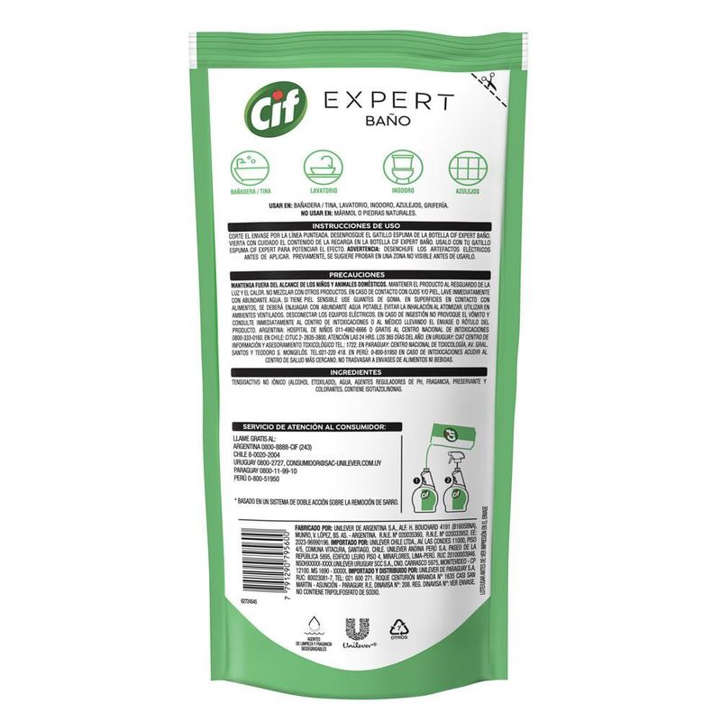 El limpiador líquido CIF EXPERT para baño garantiza máxima efectividad contra sarro y las suciedades típicas del baño. Es un limpiador para baño que con su tecnología X2 ANTISARRO brinda una limpieza fácil, removiendo 100% el sarro, restos de jabón u otros.