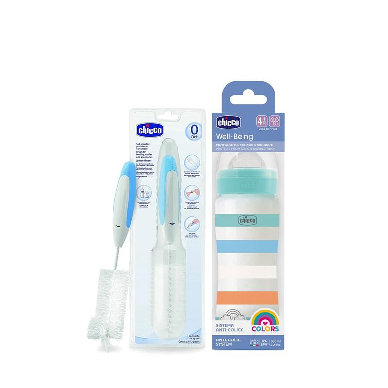 Protege de cólicos, reflujo e irritaciones. Ideal para la alimentación cotidiana del bebé. Flujo rápido. Fabricado en plástico alimentario de alta calidad, los Biberón Well-being de Chicco facilitan la alimentación del bebé gracias a la tetina Physio. Esta tetina, fabricada en una silicona suave con acabado Soft Sense, ofrece al niño una sensación placentera durante la lactancia. Ideal para la alimentación cotidiana del bebé. El biberón Well-being 330 ml posee una tetina de silicona de flujo rápido, para bebés a partir de los 4 meses y está fabricado en plástico de alta calidad. Sistema anti-cólico.
