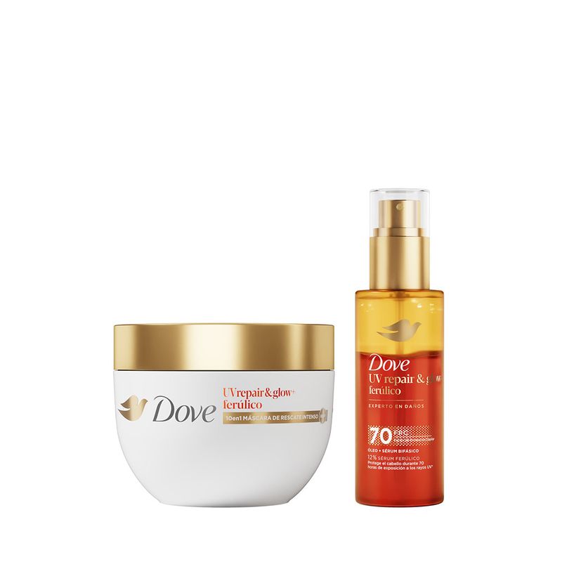 Nuevo Óleo Dove Uv Repair, repara y protége contra daños uv. 12 % sérum ferúlico antioxidante. Factor protector capilar 70