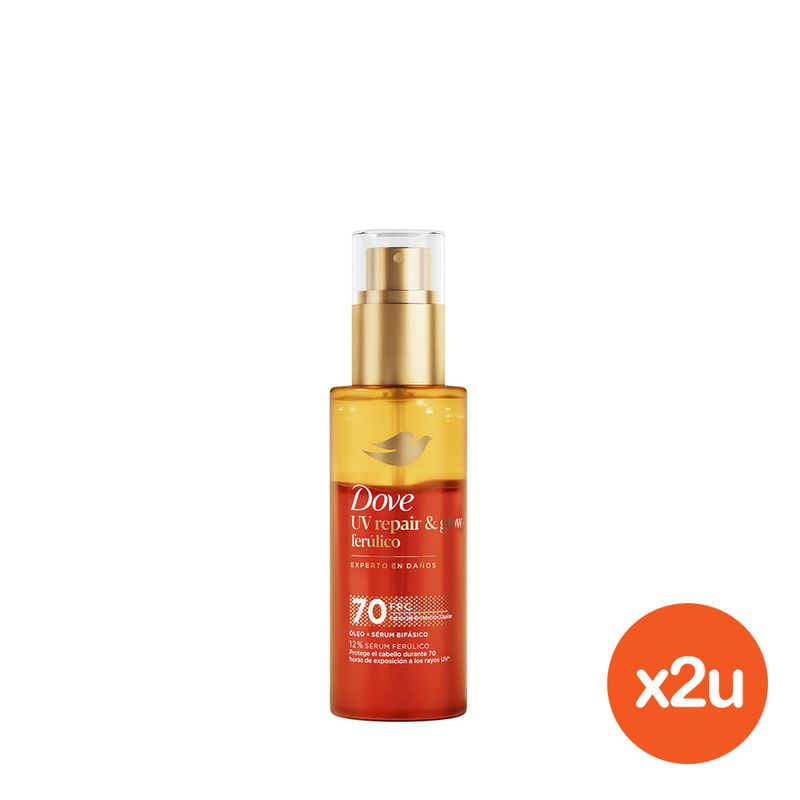 Nuevo Óleo Dove Uv Repair, repara y protége contra daños uv. 12 % sérum ferúlico antioxidante. Factor protector capilar 70