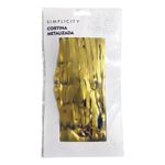 Una cortina de cotillón de papel con diseño metalizado y color dorado. Tiene una longitud de 3 metros y un ancho de 1 metro. Tiene un cordón para colgarla. Diseñada para decorar tus fiestas, eventos o espacios. Añade un toque de brillo y elegancia a tus celebraciones.