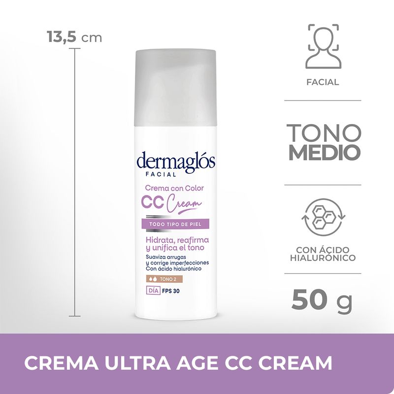 Crema con color, y Ácido Hialurónico, que promueve una hidratación por 24hs., unifica el tono de manera natural, ilumina y protege la piel a la vez que suaviza arrugas, corrige imperfecciones y reafirma la piel. Otorga mayor flexibilidad, elasticidad y tonicidad a la piel brindando suavidad sin efecto graso. Disponible en tono medio. Con Ácido Hialurónico, Hydrovance, Vitamina E, Alantoína y Aceites de arroz y damasco. Apta piel sensible – Hipoalergénica – No comedogénica – Sin parabenos – Sin TACC – Testeada dermatológica y oftalmológicamente.