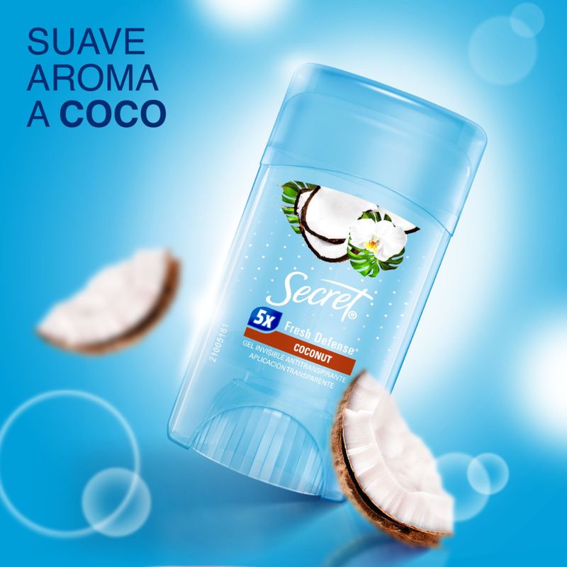 El desodorante antitranspirante en Gel Coconut de Secret tiene un suave y tropical aroma a Coco. Con aplicación transparente, te ofrece protección contra el sudor y el mal olor, sin dejar manchas blancas en la aplicación. Siéntete protegida y fresca todo el día.