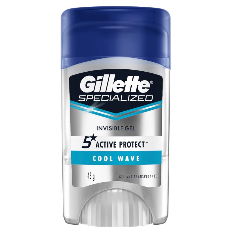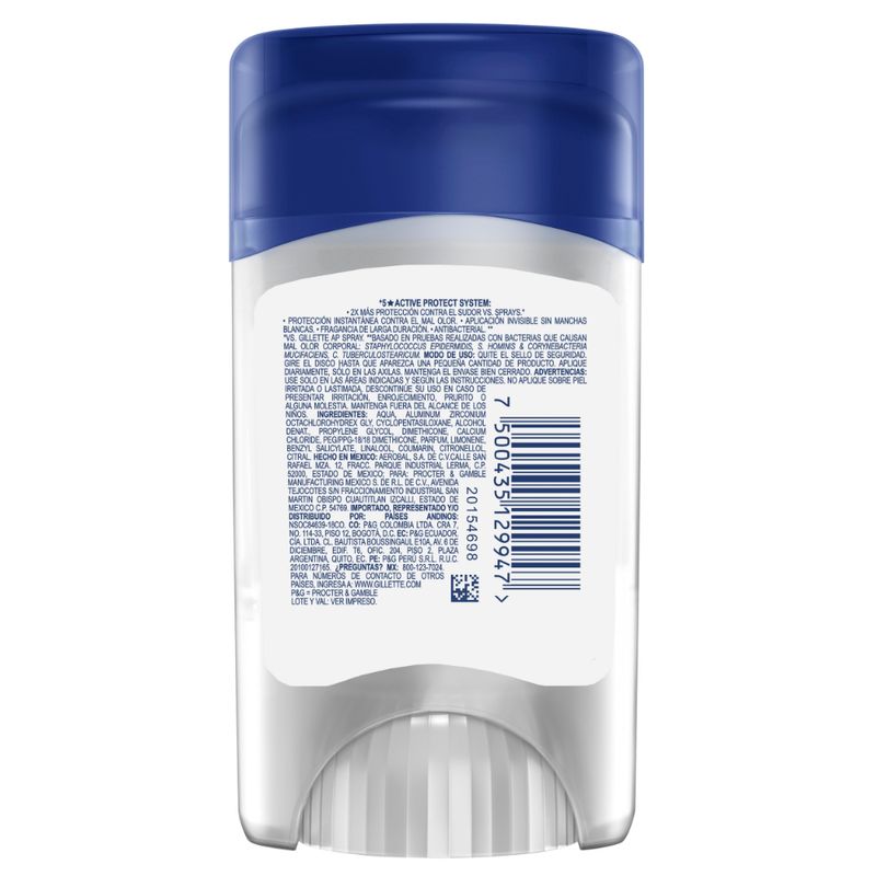 Mantente fresco y protegido con el antitranspirante gillette specialized gel invisible, que con su sistema 5 active protect te ofrece protección instantánea contra la sudoración y mal olor sin manchas blancas en la aplicación. Prueba su fragancia de larga duración con notas acuáticas y de hierbas aromáticas. Su fórmula antibacterial te mantiene protegido inclusive durante tus entrenamientos más extremos. Además, su aplicación en gel transparente te ofrece 2x más protección contra el sudor vs. spray desde el minuto cero. usa gillette antitranspirante, especializado para deportistas.
