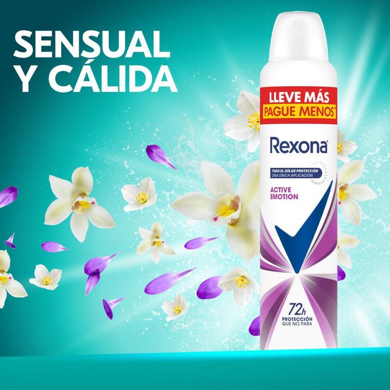 ¡Descubre la revolucionaria experiencia de protección y aroma con el nuevo Desodorante Antitranspirante en aerosol Rexona Active Emotion Women! Diseñado especialmente para la mujer moderna y activa que se encuentra en movimiento constante, este desodorante te brinda 72 horas de protección que no paran. Gracias a su innovadora fórmula, podrás disfrutar de un nivel de protección excepcional contra la transpiración y el mal olor en cualquier situación. Ya sea en el trabajo, en el gimnasio o durante tus actividades diarias, el Desodorante REXONA Active Emotion Women 250 ml te mantendrá seca y fresca, ya que te brindará todo el día de protección solo con una aplicación. Un beneficio añadido es que es un desodorante libre de alcohol etílico, lo que lo hace suave para la piel y dermatológicamente testeado para tu tranquilidad. Sumérgete en una experiencia aromática con su fragancia delicada y sensual, lograda por la fusión única de notas frutales y florales. Cada aplicación te envolverá con una frescura embriagadora que te acompañará durante todo el día. ¡Confía en Desodorante REXONA Active Emotion Women 250 ml y siéntete segura y protegida mientras disfrutas de la vida al máximo!