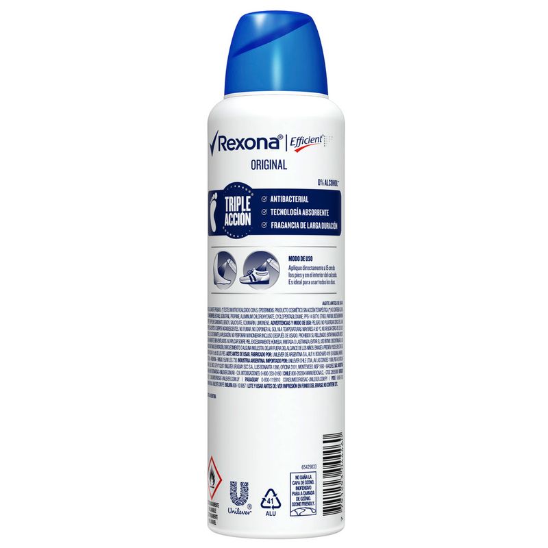 Los pies son la parte del cuerpo que más se mueve, la que más se esfuerza, pero también la menos reconocida, nunca se llevan la gloria. Es hora de reinvindicarlos, de mantener frescos y secos a los pies. Esa parte del cuerpo que transpira 4 veces más que las axilas. Rexona Efficient. La protección que conocés, también para los pies. Rexona. No te abandona. Beneficios: