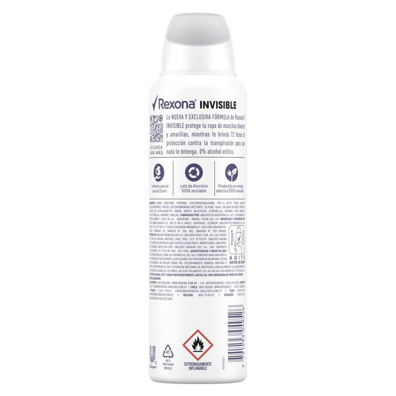 Descubre el nuevo Desodorante REXONA Invisible Women 150 ml, una revolucionaria fórmula diseñada para brindarte una protección inigualable durante 72 horas. Con esta innovadora fórmula, olvídate de las preocupaciones y mantente protegida todo el día con una sola aplicación. Ofrece un nivel superior de protección contra la transpiración y el mal olor, cuidando tu ropa con su avanzada tecnología. Estarás ultra seca y fresca en cada movimiento, sin manchas blancas o amarillas en tu ropa. Además, es dermatológicamente testeado, suave y amigable con tu piel. Sumérgete en una experiencia olfativa refrescante con su fragancia única, que combina notas cítricas con toques a frutas, brindándote una sensación de frescura duradera. El práctico envase en aerosol de 150 ml asegura que tendrás suficiente desodorante para disfrutar de la máxima protección y frescura en cada aplicación. Mantente segura y protegida con el Desodorante REXONA Invisible Women 150 ml.