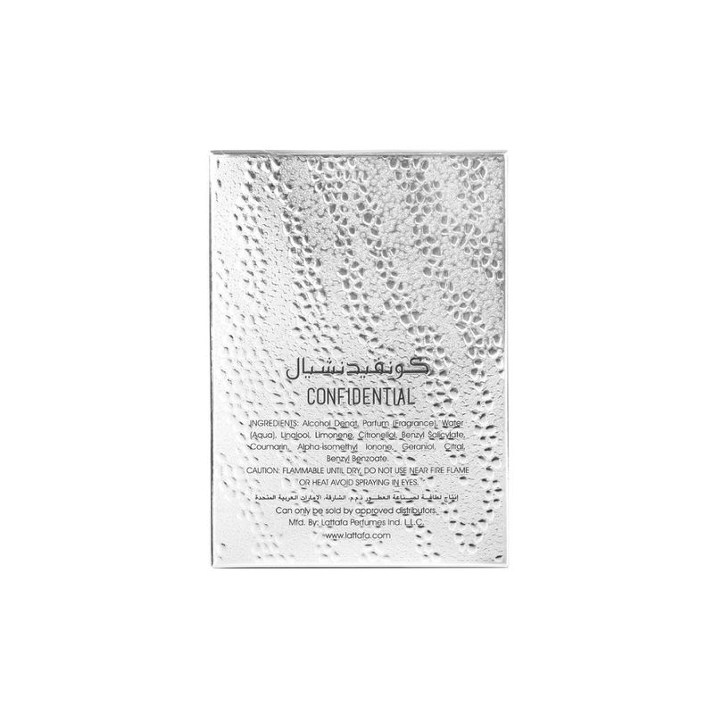 Confidential Platinum de Lattafa Perfumes es una fragancia de la familia olfativa Amaderada Aromática para Hombres. Esta fragrancia es nueva. Confidential Platinum combina hábilmente el sedoso frescor de los cítricos con las maderas aromáticas.
