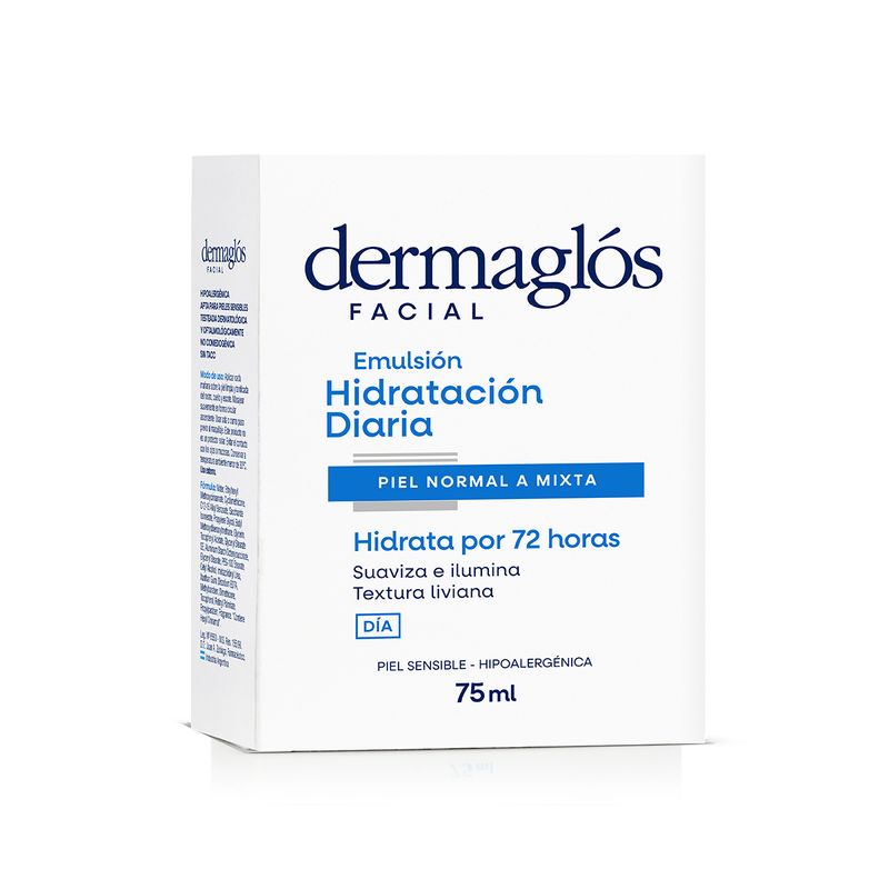 Aplicar la Crema o Emulsión Hidratante Dermaglós sobre la piel limpia y tonificada, cada mañana, en rostro, cuello y escote. Usar los dedos mayor y anular para la aplicación, realizando movimientos circulares ascendentes. Usar sola o como paso previo al maquillaje.