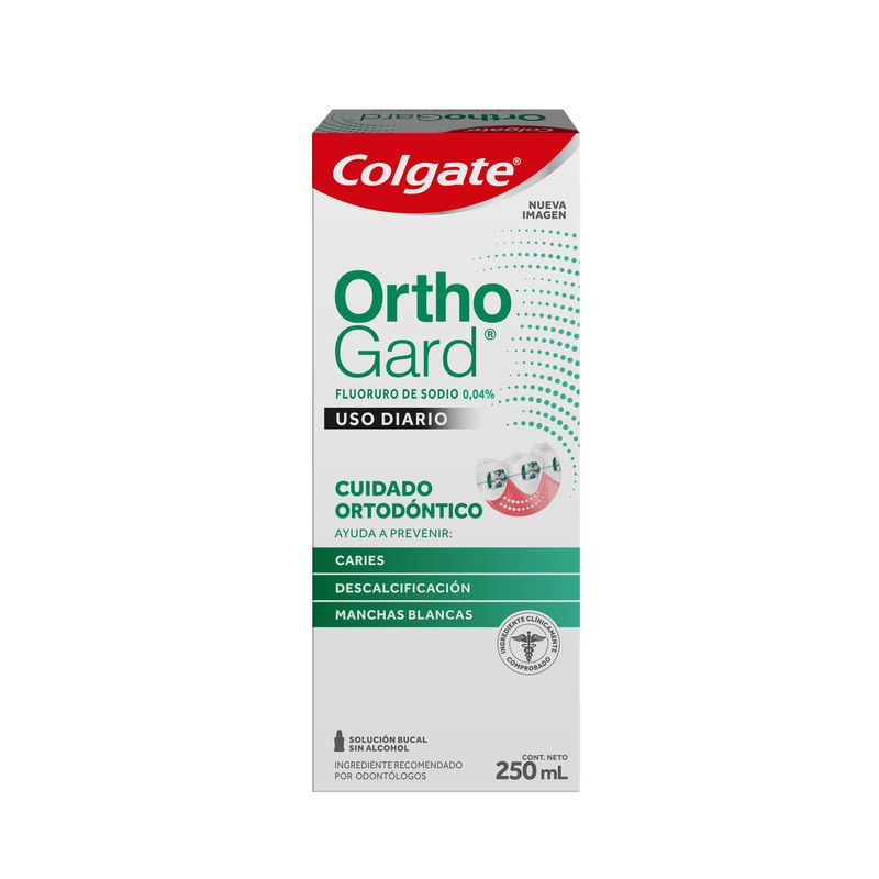 Enjuague bucal de uso diario para el cuidado ortodóntico que ayuda a prevenir manchas blancas, descalcificación y caries.Los brackets y otros aparatos ortodónticos dificultan la higiene oral adecuada, razón por la cual el cuidado especializado es esencial para ayudarte a obtener la sonrisa perfecta que deseas.