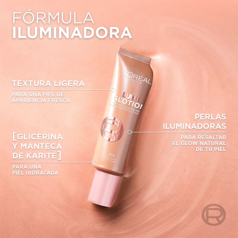 Iluminador líquido Lumi Glotion de L’Oréal Paris, con una fórmula iluminadora que potencia el brillo natural de tu piel para que luzca radiante, hidratada y con un acabado natural.