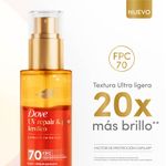 Nuevo Óleo Dove Uv Repair, repara y protége contra daños uv. 12 % sérum ferúlico antioxidante. Factor protector capilar 70