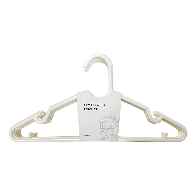Los ganchos para ropa son un objeto que imita la forma de los hombros para colgar sobre ellas todo tipo de prendas, como camisas, blusas, chaquetas o abrigos. Cuenta también con una barra debajo en la que se pueden colocar pantalones y también pueden tener unas pinzas para faldas. Están diseñados para que la ropa no se arrugue y para que tampoco se caiga.Color sujeto a disponibilidad. -Color sujeto a disponibilidad-
