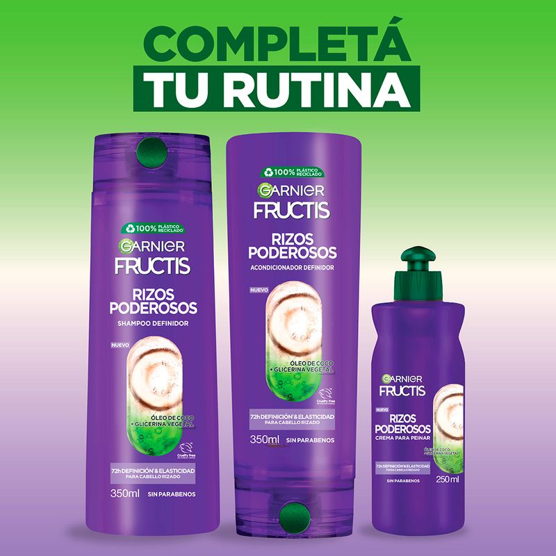 Lográ Rizos definidos por 72hs, su fórmula sin parabenos es para cabellos con rizos, posee proteína de fruta y aceite de coco.