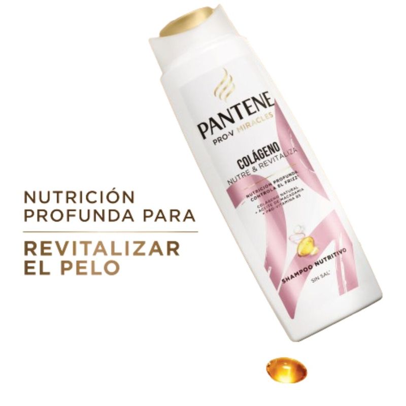 El Shampoo Nutritivo Pantene Colágeno Nutre y Revitaliza sin sal* cuenta con lípidos y antioxidantes que se absorben instantánea y profundamente. Su fórmula con un aroma irresistible proporcionará una nutrición profunda para revitalizar el pelo sin dejarlo pesado.